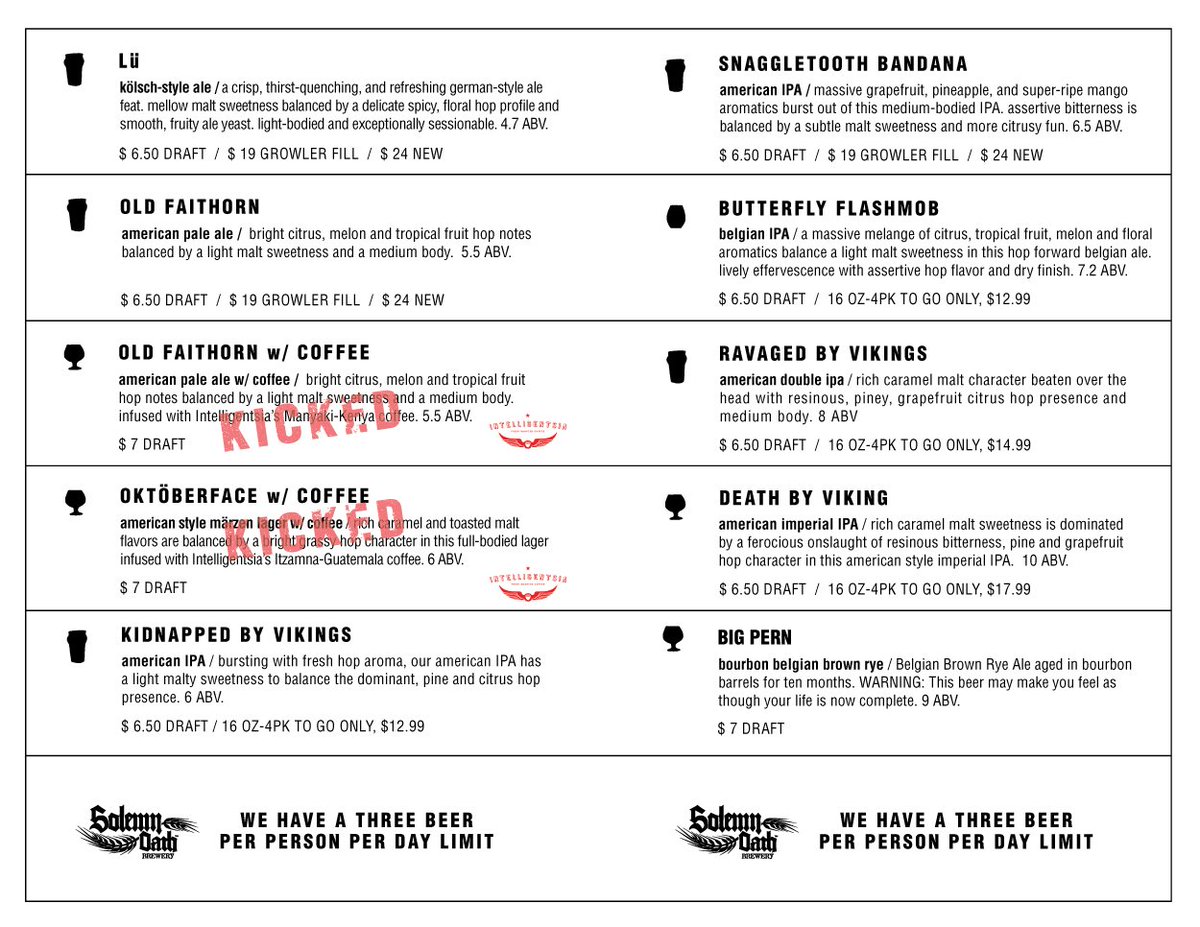 Solemn Oath Brewery On Twitter Here S The Taproom Menu For Tonight Open Until 9pm