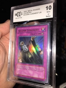 Solemn Judgement 2002 Metal Raiders Mrd Ur Ultra Rare Yugioh Graded 10 Mint Bccg Ebay